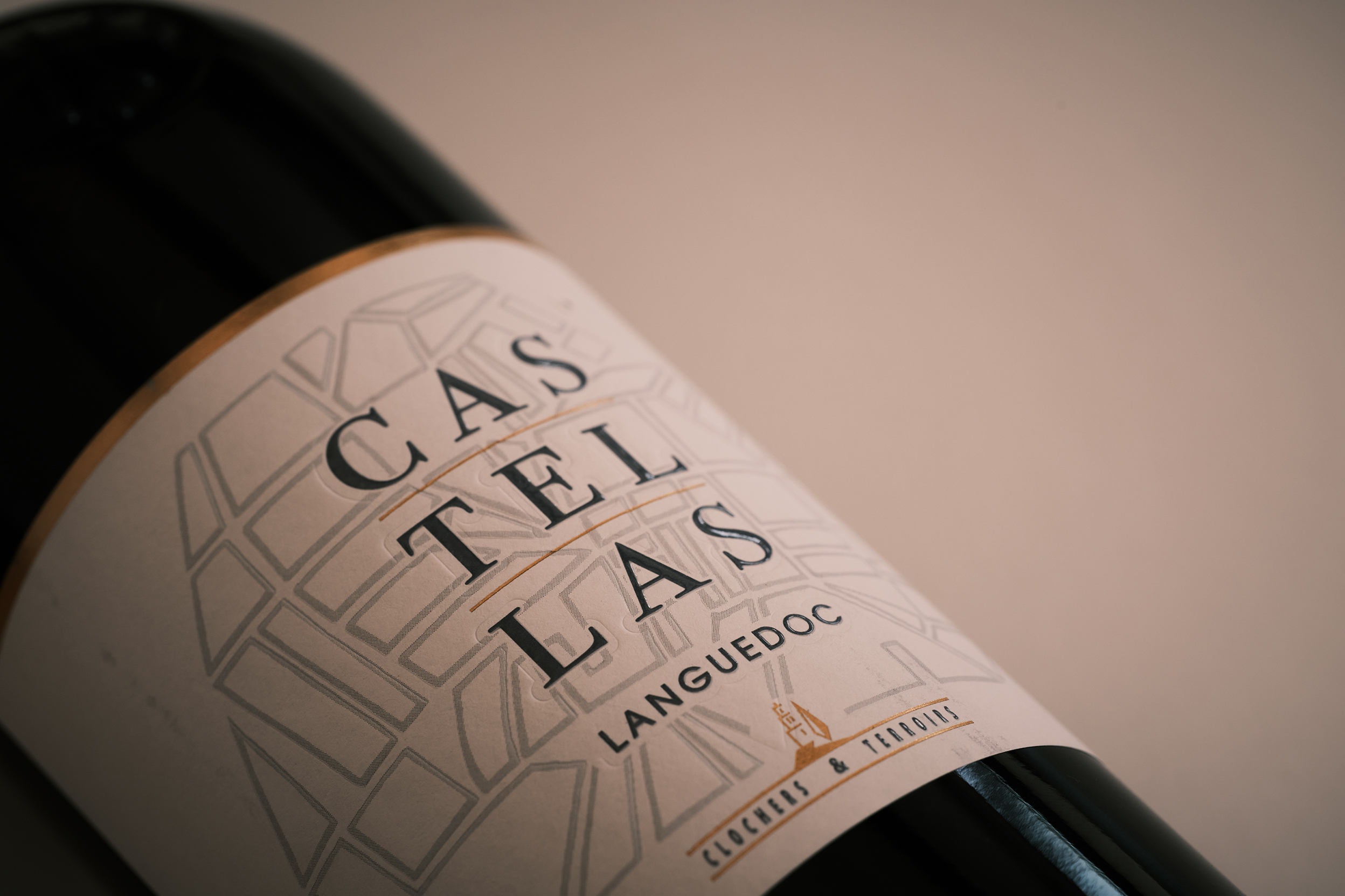 CAVE CLOCHERS & TERROIRS . Création d’un habillage haut de gamme Languedoc classé HVE, Haute Valeur Environnementale.
