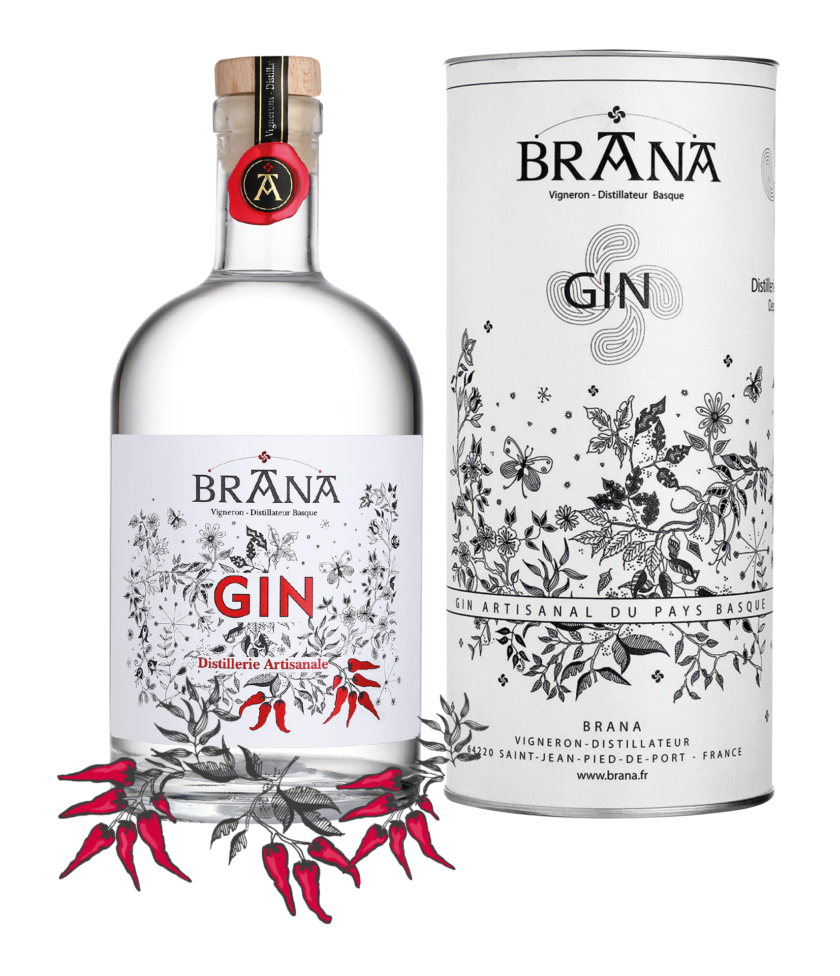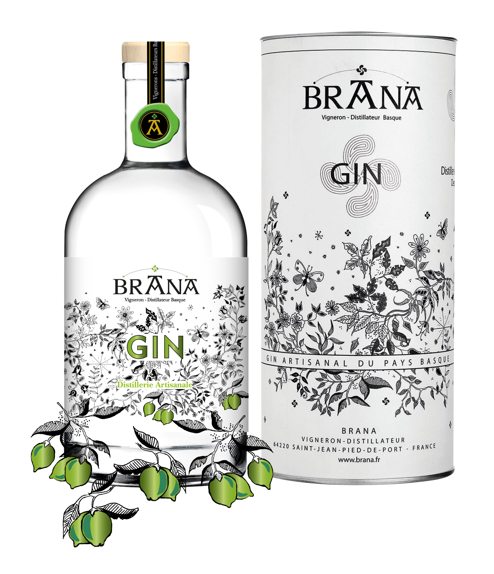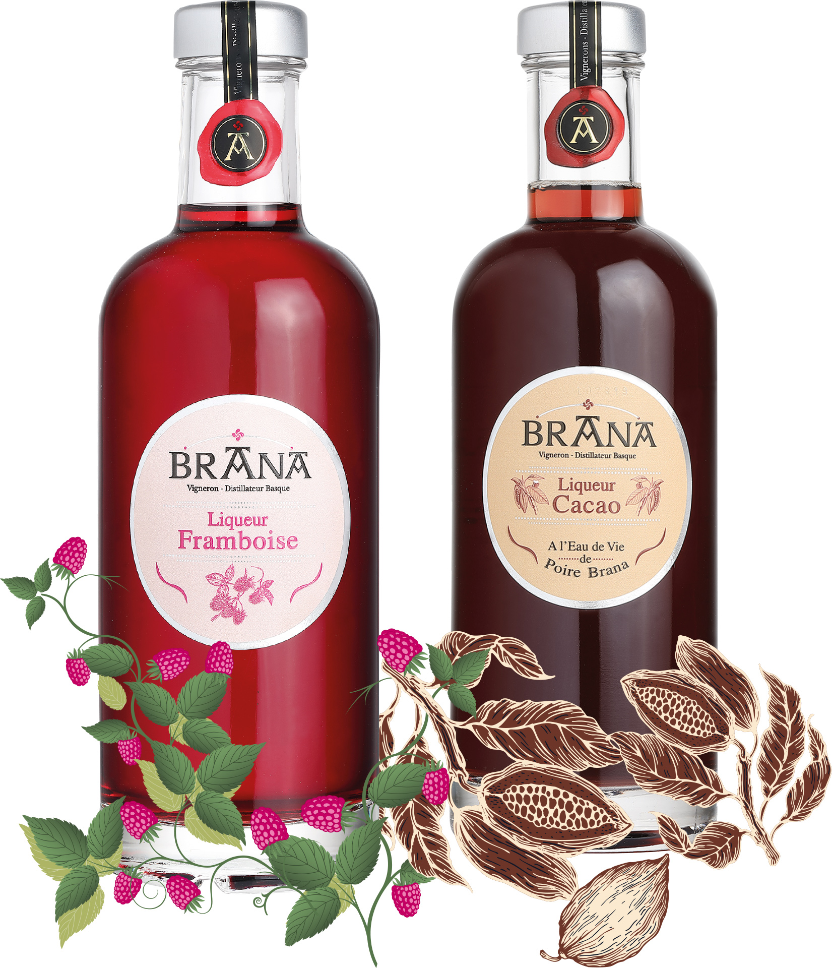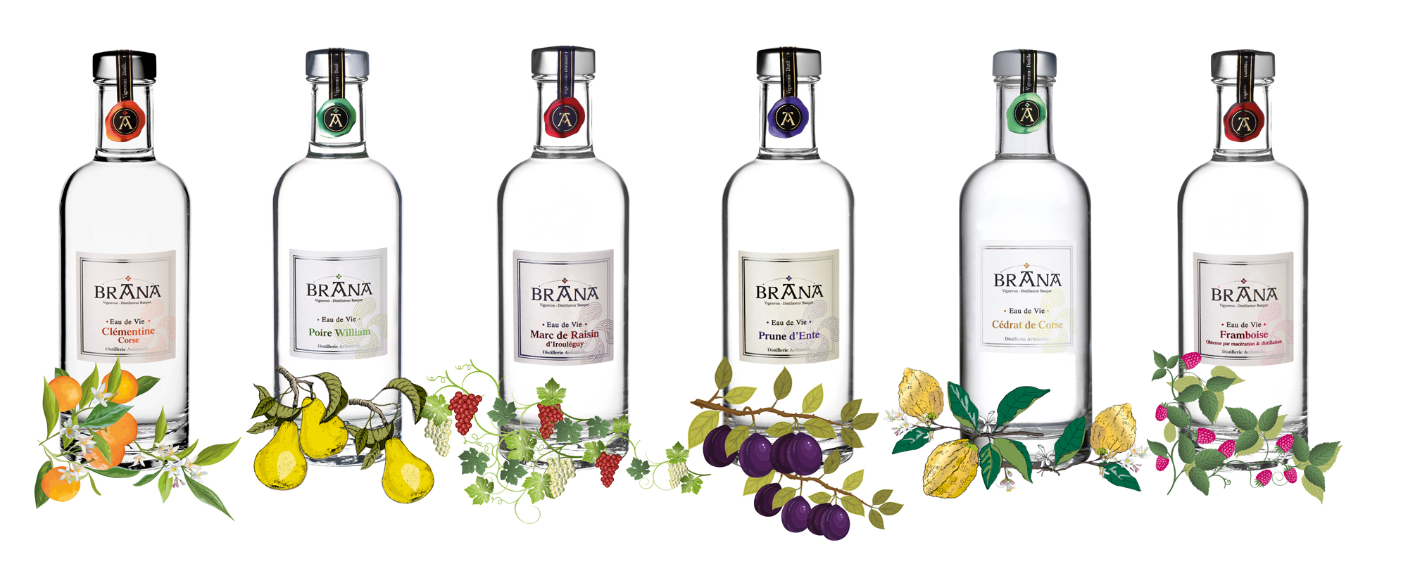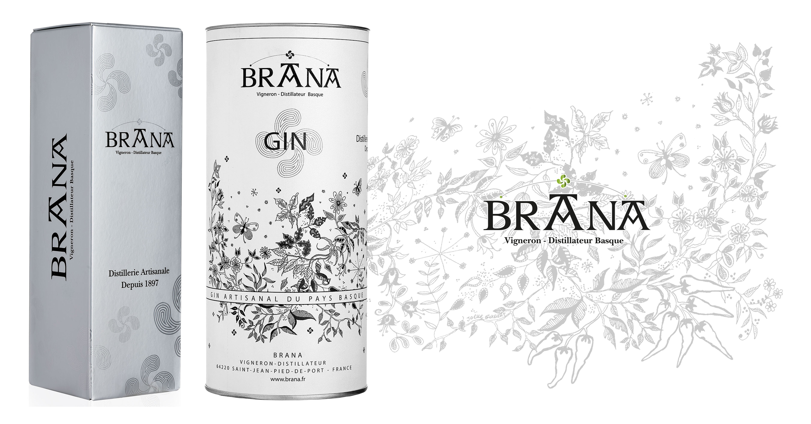 Création d’une gamme complète pour Eaux de Vie Brana dans le Pays Basque. Etude du packaging comprenant :
