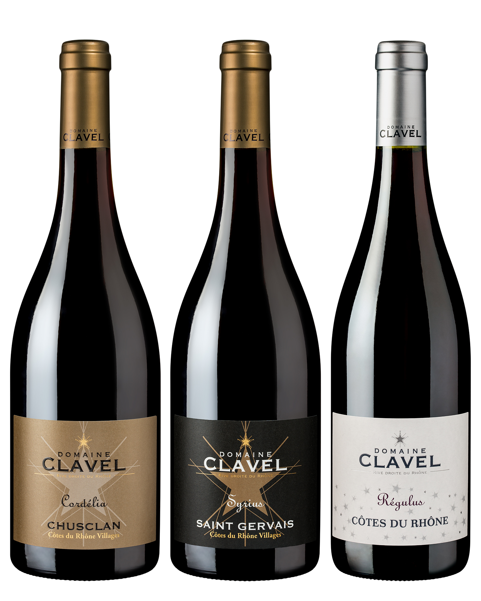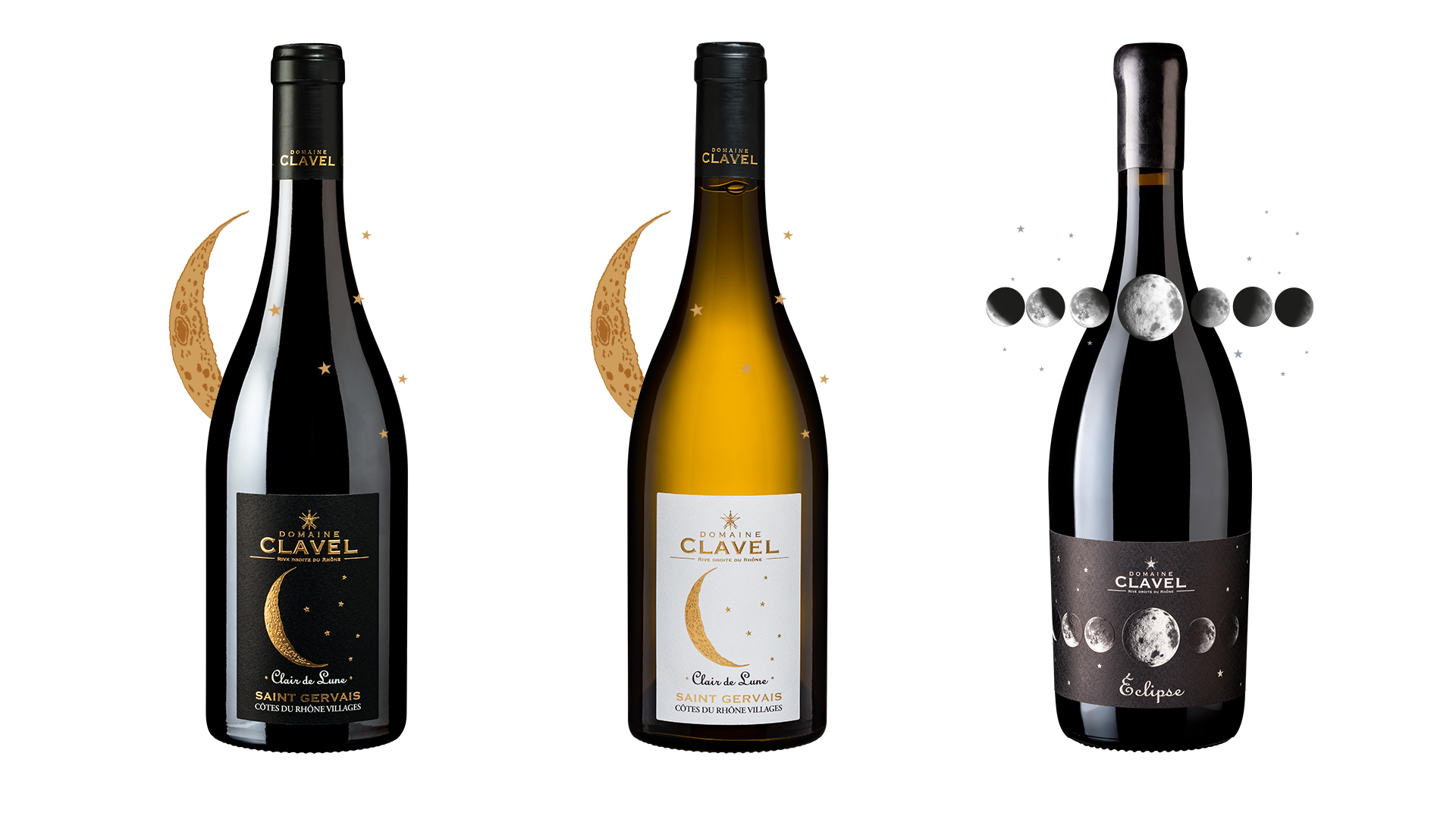 Création de l’identité visuelle avec une base line : Rive droite du Rhône pour situer géographiquement le Domaine. La thématique : les Étoiles et les astres. La gamme a été entièrement revue par appellation. L’entrée de gamme RÉGULUS Côtes du Rhône suivi des deux autres cuvées CORDÉLIA & SYRIUS Côtes du Rhône Villages