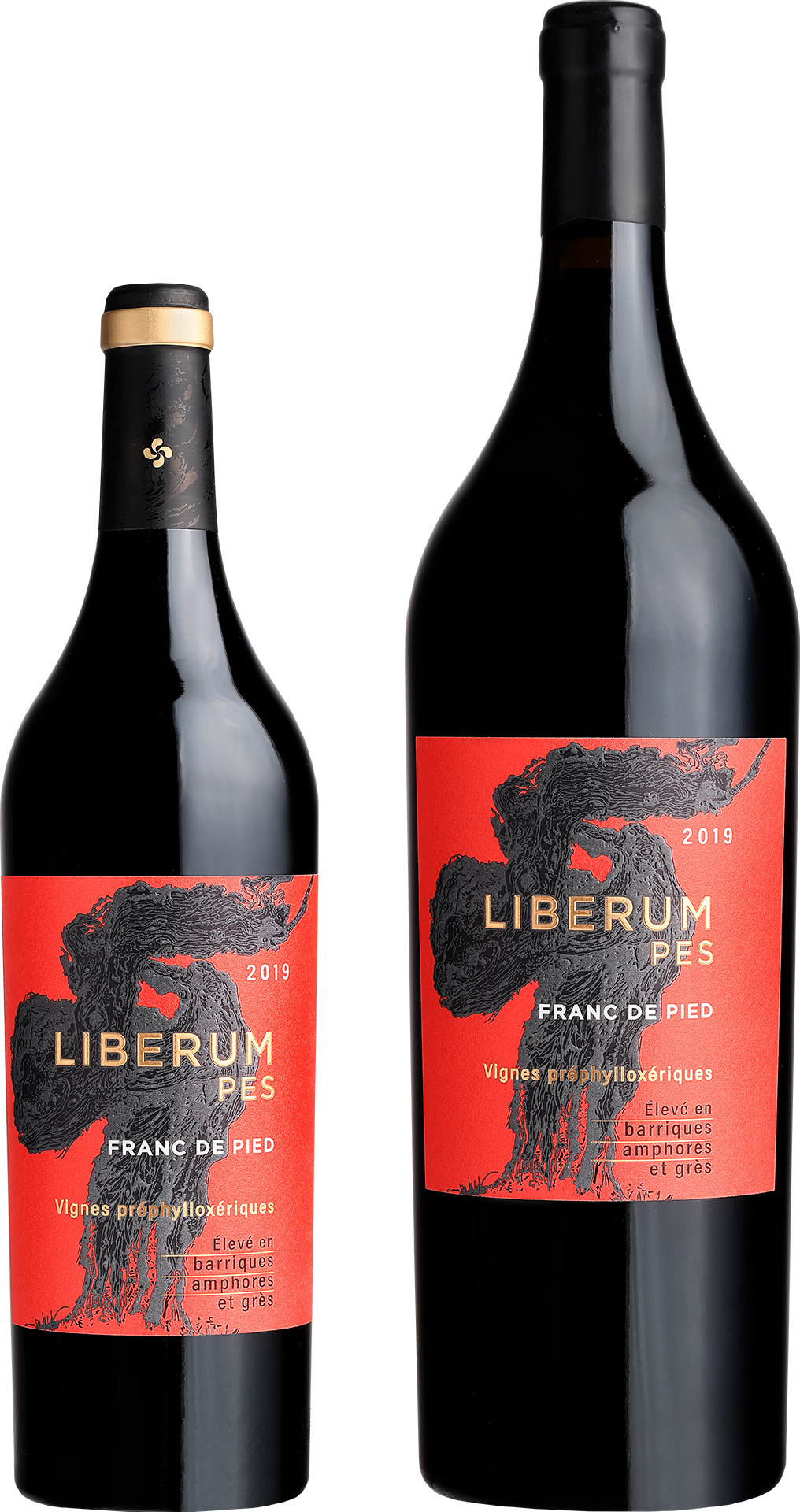 Création de l’habillage complet Etiquette, contre et capsule. J’ai dessiné un cep de vigne préphylloxérique d’après photo . Traité à l’encre et réalisé avec un galbage sur un support papier Cotton bianco; la texture de l’impression intensifie la matière riche de ce vin rouge Irouléguy.